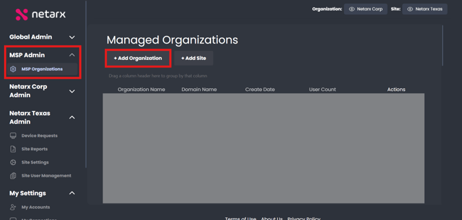 - Organization added in the Netarx portal